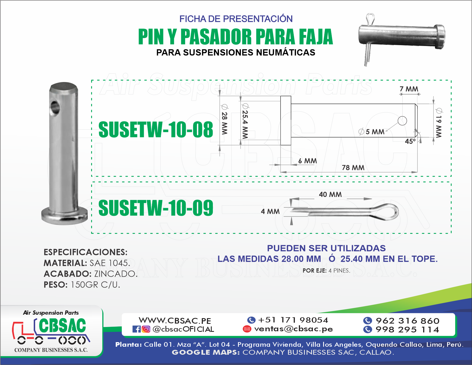 PIN Y PASADOR PARA FAJA (SUSPENSIÓN NEUMÁTICA)
